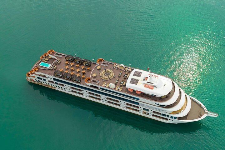 Embark on an unforgettable full-day voyage aboard the largest cruise in Halong Bay. Discover the awe-inspiring beauty of this UNESCO World Heritage site, uncover its hidden treasures, and indulge in mouthwatering cuisine. Relax on the sundeck as you take in breathtaking landscapes and create lasting memories. This is a one-of-a-kind experience you won’t want to miss!